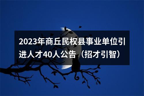声明:专注 2023年商丘民权县事业单位引进人才40人公告(招才引智) 相关岗位分析;专业指导面试技巧;保障就业成功概率。
